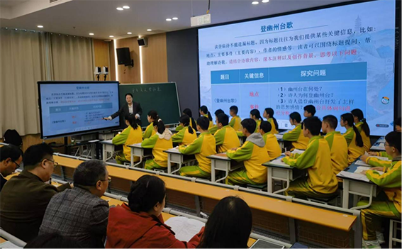 同时,南充市网链共享背景下“AI+双师课堂教学研培活动”在我校科教楼音乐厅和多功能厅同步举行。这次活动由四川省付入林名师工作室、四川省郭斌名师工作室、南充市教育技术装备所等多机构、组织共同组织,并由我校协办。在活动中,我校数学教师冯艳凤、嘉陵一中语文教师宋卓文分别用公开课的方式开启研培活动。付入林、郭斌随后开展课堂点评与讲座,介绍AI在教育领域的运用现状与广阔前景。