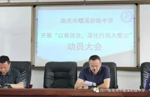 5月22日上午11点,四川省南充市螺溪初级中学召开以案促改深化行风大整治动员会,传达学习高坪区教育系统开展以案促改深化行风大整治动员大会精神,安排部署全校以案促改深化行风大整治工作。