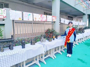 随后,各位领导参观了该校学生有关法治教育的手抄报、绘画、手工等作品。该校美术兴趣班同学们用纸杯、饭盒、纸箱等材料制作而成的青铜器系列作品,造型独特,色泽厚重,得到领导的高度赞赏。
