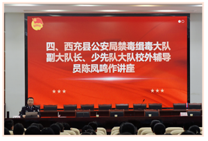 表扬大会结束后县公安局禁毒缉毒大队陈凤鸣警官对参会的全体师生作了一场关于禁毒教育的专题知识讲座。