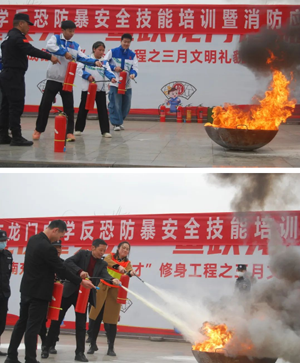 为进一步增强师生安全防范意识,提高自救和抵御外来侵害行为的能力,加强校园安全保卫工作,3月12日上午,四川省南充龙门中学携手嘉陵区特警大队开展了校园反恐防暴安全技能培训暨消防应急演练活动。学校党委委员、副校长张洪波,保卫处干部、班主任代表、门岗、宿管、食堂工作人员、护校队队员及班级安全委员参加活动。本次活动还得到了龙门派出所及南充师范校的专业指导和鼎力支持。