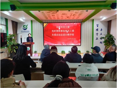 2月16日上午,邛崃市关工委、光时律师事务所关工委向白鹤学子捐赠仪式在我校了翁讲堂举行。出席此次活动的嘉宾有市关工委李怀忠主任、市关工委傅尚志主任、市关工委管义昌主任以及光时律师事务所王燕主任和3位爱心人士一行。