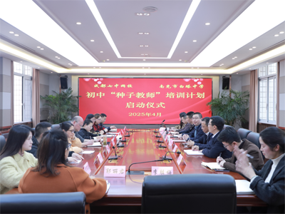 为进一步加强南充市白塔中学与成都七中育才学校战略合作,培育教育教学中坚力量,推动高坪教育高质量发展,2025年4月2日下午5点,成都七中育才学校—南充市白塔中学初中“种子教师”培训计划启动仪式在南充市白塔中学牛津楼二楼会议室隆重举行,高坪区教育局专职副书记徐小平,高坪区教科所所长夏毓,白塔中学党委副书记何松涛、副校长罗建军,白塔中学党委办主任、初中年级负责人张志强,政教处副主任林贞平,教科室副主任马兰,初三年级组长姚晓及9位入选种子选手教师参加会议,会议由何松涛副书记主持。