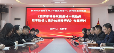2025年6月15日,资阳市吕俊君名师工作室重点课题《教育家精神赋能县域中职教师数字胜任力提升的策略研究》专题研讨会,在四川省安岳第一职业技术学校隆重举行。此次研讨会汇聚了全校骨干教师代表,共同探讨数字化转型背景下县域中职教师数字胜任力提升的创新路径。