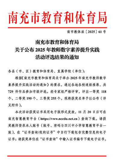 此次获奖,既是对老师们深耕教学的可喜回报,更是学校坚持“数字赋能教育”、推进教学创新的成果体现。学校将持续加强教师数字素养培育,推动信息技术与教育教学深度融合,鼓励教师不断探索数字化教学新路径、新方法,持续提升学校数字化教学的育人能力。