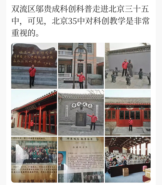 双流牧马山科创达人邬贵成 赴北大等五校分享科普经验 架川京教育交流桥