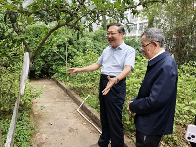 随后,谭教授和杨博士随校领导来到我校植物园,漫步于葱茏草木间,他们驻足凝望、颔首赞叹,触摸着亲手栽种的成长纪念树,凝视着学生培育的智慧农圃,每一处设计都彰显着“以自然为师”的育人哲思。谭教授由衷感概:植物园是营山学子“格物致知”的现货课堂——劳动教育、生态意识、科学精神,皆在这篇沃土中悄然生根发芽。