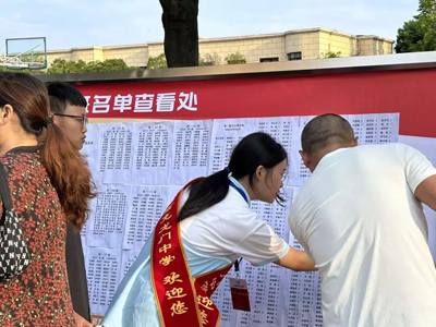 上午7点左右,新生们在家长的陪伴下,早早就来到分班展板前,细心察看分班名单、班级位置、班主任电话等信息,为顺利找到并融入龙中“新家庭”做好攻略。