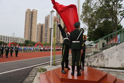 伴随着雄壮的国歌声,五星红旗冉冉升起,全体师生肃立注目,心中涌动着对祖国的无限热爱与崇高敬意。这一刻,爱国之情在心中激荡,为新学期的学习生活注入了强大的精神动力。