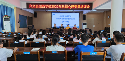 2025年9月5日中午,兴文县城西学校在启智楼大会议室召开了心理委员培训会。本次培训旨在加强学生心理健康队伍建设,充分发挥班级心理委员的辅导作用。
