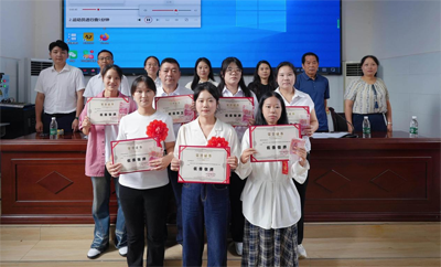 在激昂的《颁奖进行曲》中,受表彰教职工依次上台,从学校领导手中接过荣誉证书和鲜花。会场掌声不断,表达了对优秀同仁的祝贺与敬意。
