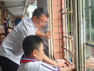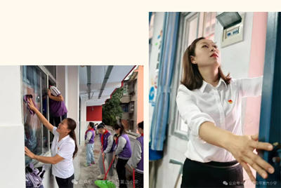 校园里,一派热火朝天的劳动景象令人动容。党员教师们躬身示范,不仅指导学生如何劳动,更用实际行动诠释着责任与担当。年轻党员教师罗老师边擦拭门窗边对学生说:“把校园打扫得干干净净,就是我们献给祖国最好的生日礼物。”