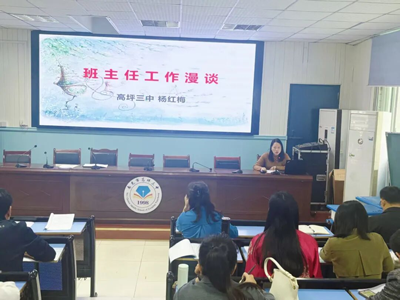 为进一步提升班主任管理水平,凝聚育人智慧,近日,南充市高坪第三初级中学召开班主任工作经验交流会,会议由副校长易文主持,学校领导和全体班主任参加会议。