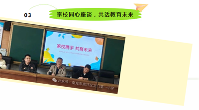 活动的最后一站,家长们移步学校会议室,参加家校座谈会。出席座谈会的领导有:龙汪洋校长、黄金副校长、杨刚副校长、吴承梅主席。学校领导和家长们围坐一堂,面对面交流,心贴心沟通。大家就孩子们成长中的热点问题、家校合作的路径方法进行了深入探讨,共同许下携手助力孩子美好明天的承诺。