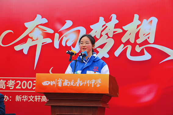 学生代表欧霞以青春的名义发声,呼吁同学们以“没有比人更高的山,没有比脚更长的路”的信念,苦战两百天,圆梦中高考。