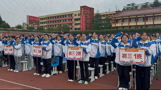 大会现场,还举行了庄严的集体宣誓。同学们高举右拳,铮铮誓言铿锵有力,响彻校园,彰显了龙中学子决战中高考的坚定决心与昂扬斗志。