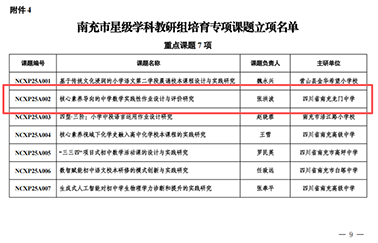 近日,南充市2025年度教育科研及星级学科教研组培育专项拟立项课题名单揭晓,南充龙门中学3项课题凭借扎实的研究基础、创新的研究视角成功立项。
