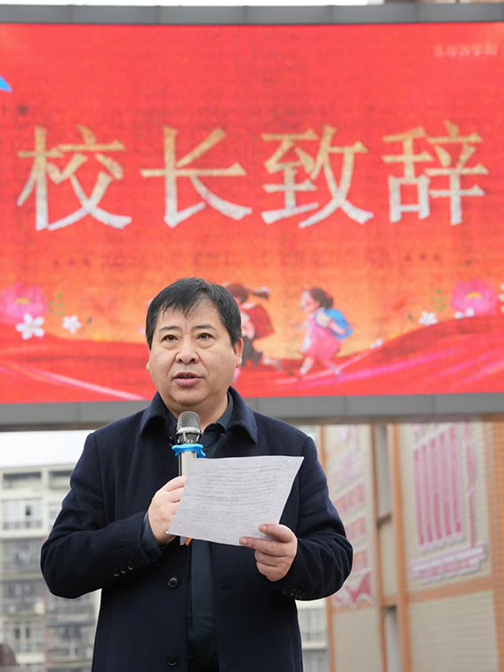 学校党支部书记李福林以“奔腾”为主题致辞,勉励师生胸怀千里马之志、练就老马识途之能、弘扬龙马精神,攻坚克难、共谱学校发展新篇。学生代表兰梓萱发言,表达珍惜时光、勤学奋进、争做新时代好少年的决心。
