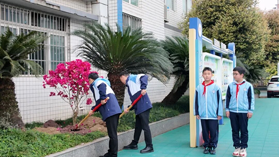 随后,学校开展“播种希望之树”环节,各班师生代表共同培土、浇水,以三角梅栽种寄寓中考美好愿景。